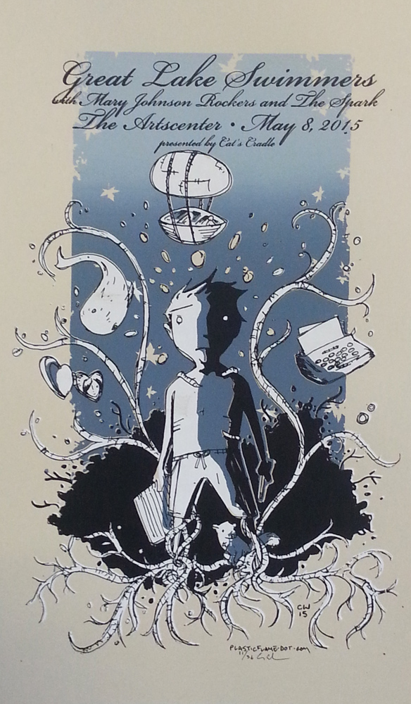Print for Great Lake Swimmers at the Artscenter. Three screens on cover stock. Measures approx 11.25" x 19"