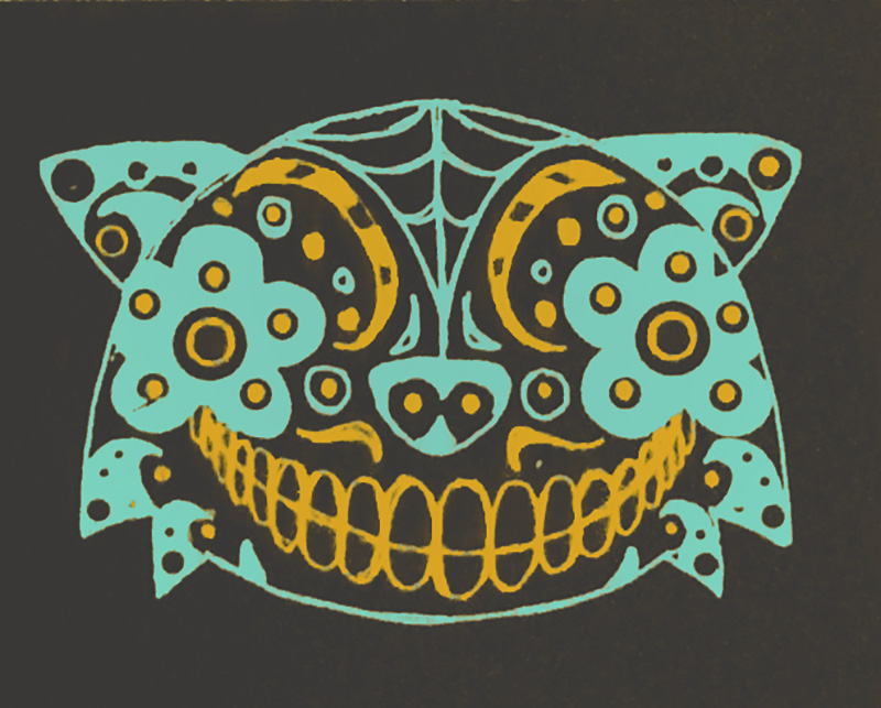 Tiny prints of bear and cat sugar skulls. Comes as a set.