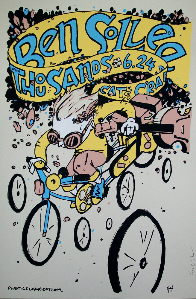 Poster for Ben Sollee at Cat's Cradle in Carrboro, NC. Five screens on French cover stock, measures 12.5"x19".