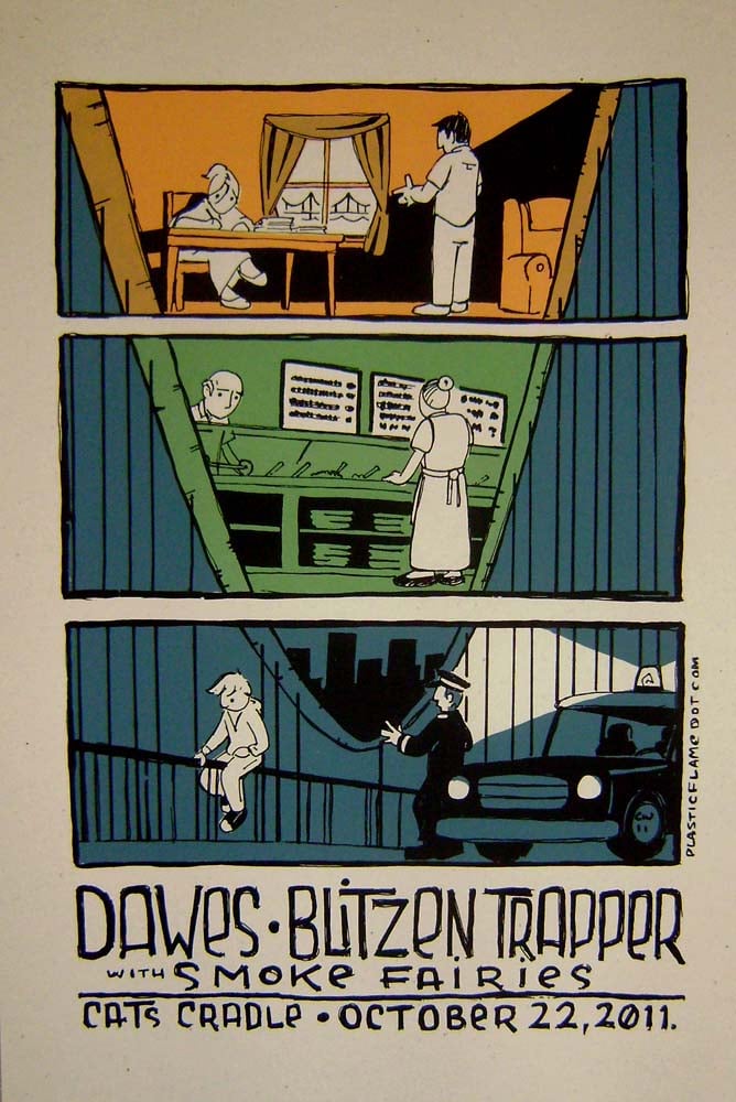 Poster for Dawes and Blitzen Trapper at Cat's Cradle in Carrboro, NC.