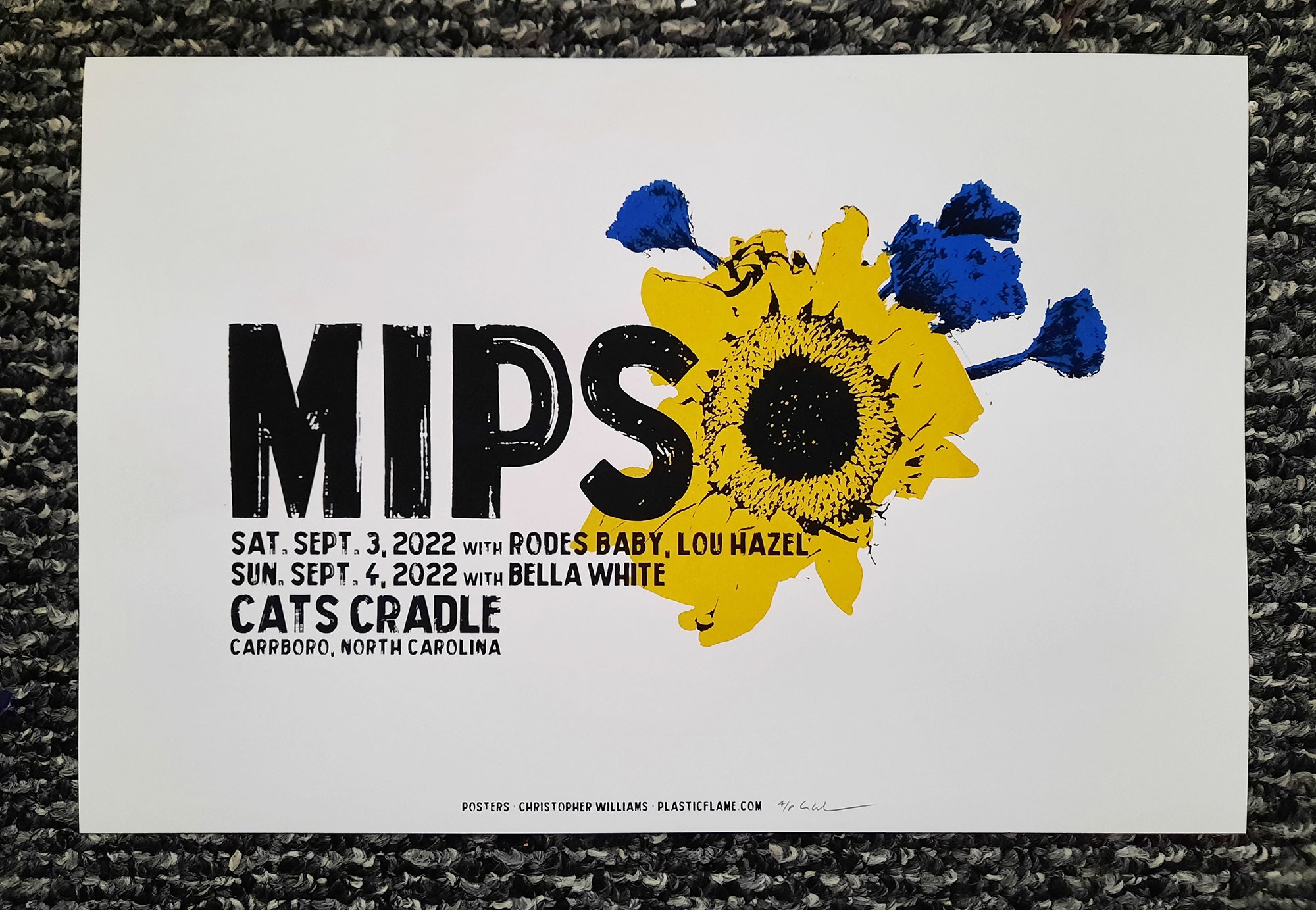 Poster for Mipso at Cat's Cradle in Carrboro, NC. Three screens on cover stock. 18"x12"