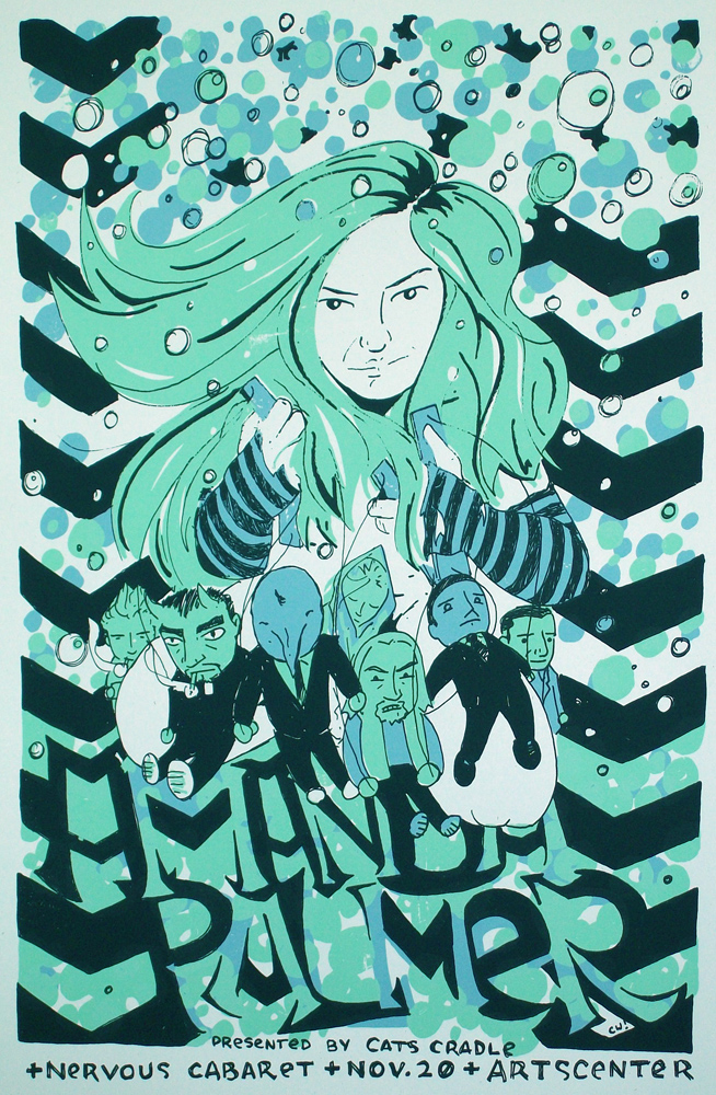 Poster for Amanda Palmer's performance at the Artscenter in Carrboro, NC.