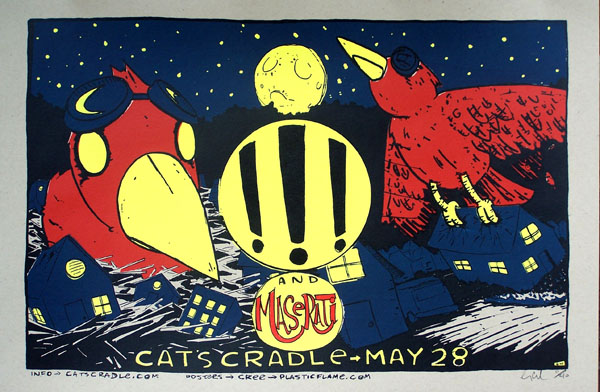 Poster for !!! at Cat's Cradle in Carrboro, NC. With Maserati. Mas. Er. Ati. WTF.