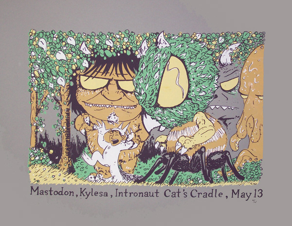 Poster for Mastodon at Cat's Cradle in Carrboro, NC. Based on Maurice Sendak's 'Where the Wild Things Are.'