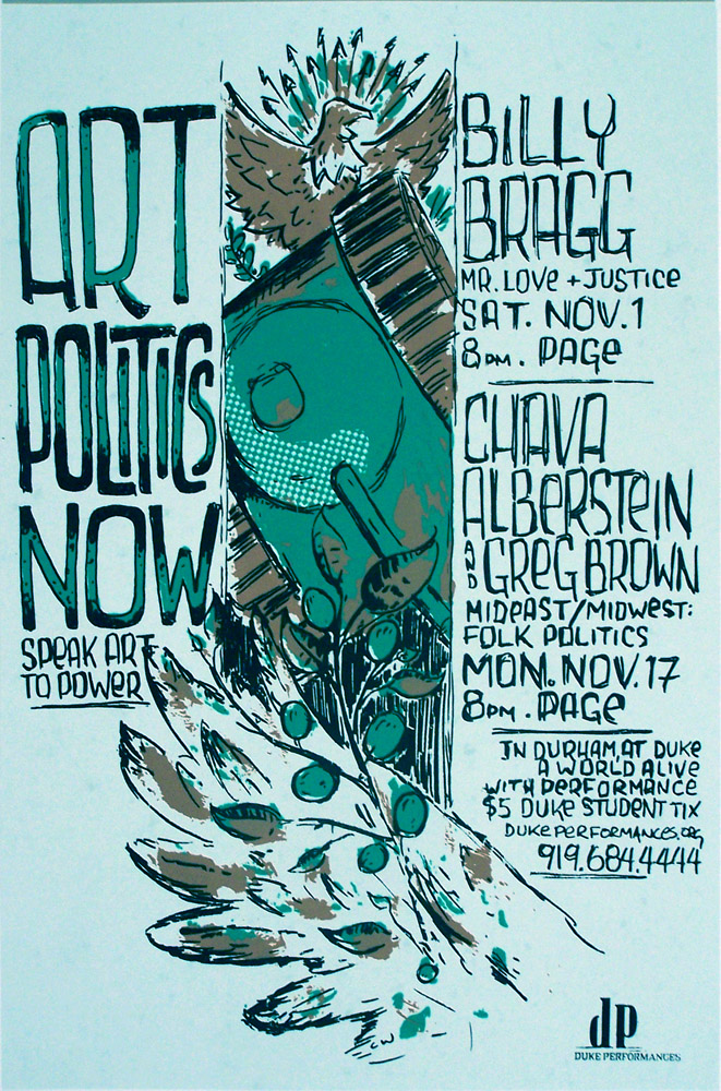 Poster done for the Art, Politics, Now series at Duke University featuring Billy Bragg.